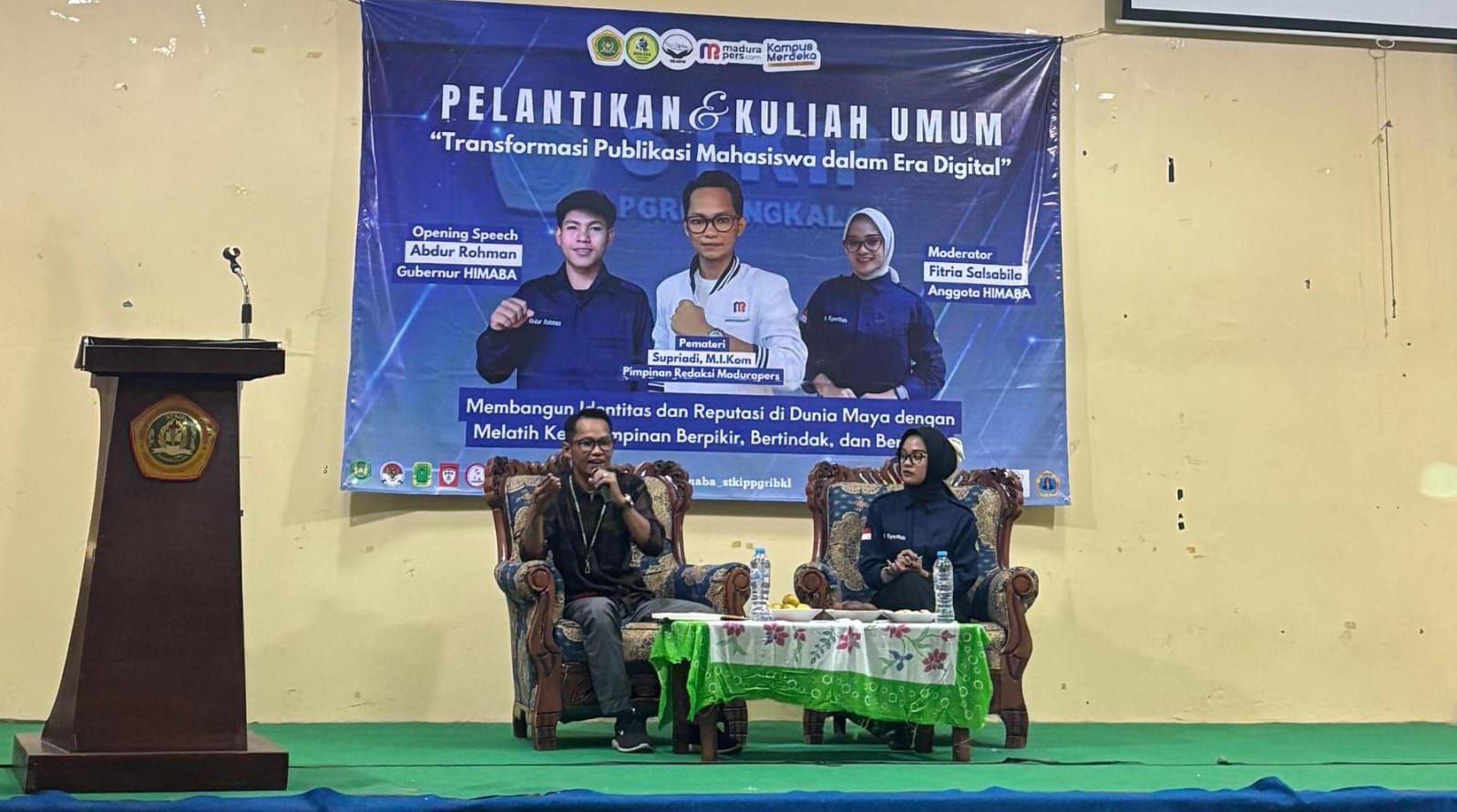 stkippgri-bkl.ac.id Himpunan Mahasiswa Pendidikan Bahasa dan Sastra Indonesia (Himaba) menggelar kuliah umum bersamaan dengan pelantikan pengurus periode 2025-2026 pada Senin (17/02/2025) di Graha Kampus STKIP PGRI Bangkalan. Kegiatan ini mengundang pemateri dari media Madura Pers yakni Supriadi, M.I.Kom.